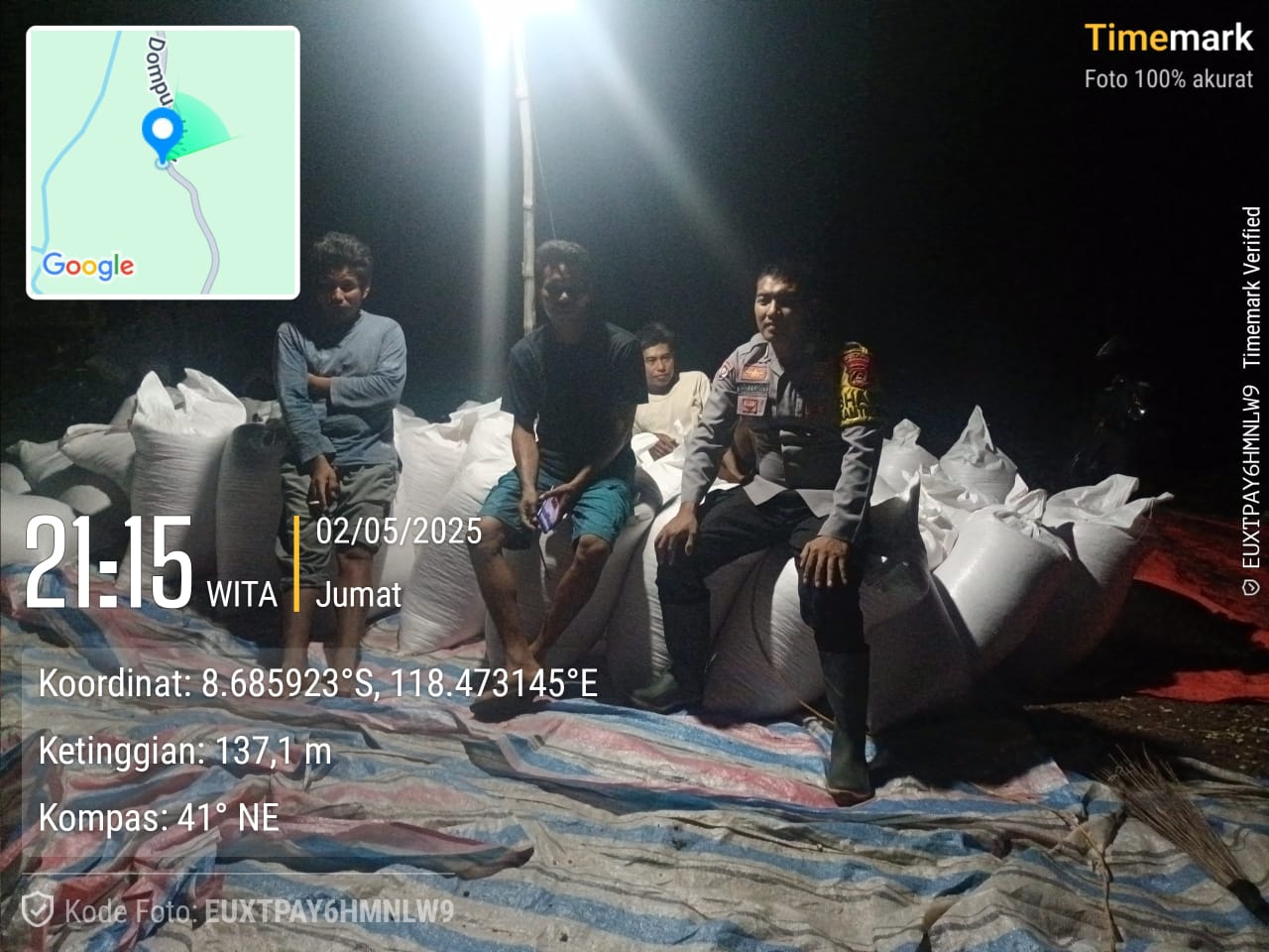 Kapolsek Hu’u IPDA Samsul Rizal, melalui Kasi Humas Polres Dompu IPTU Zuharis, S.H., menyampaikan bahwa jagung milik Sdri. Sri Murni sebelumnya telah melalui proses pengujian kadar air di kantor Bulog pada Jumat siang, dan hasilnya menunjukkan angka 13,5 persen — memenuhi syarat standar Bulog untuk dilakukan penyerapan.