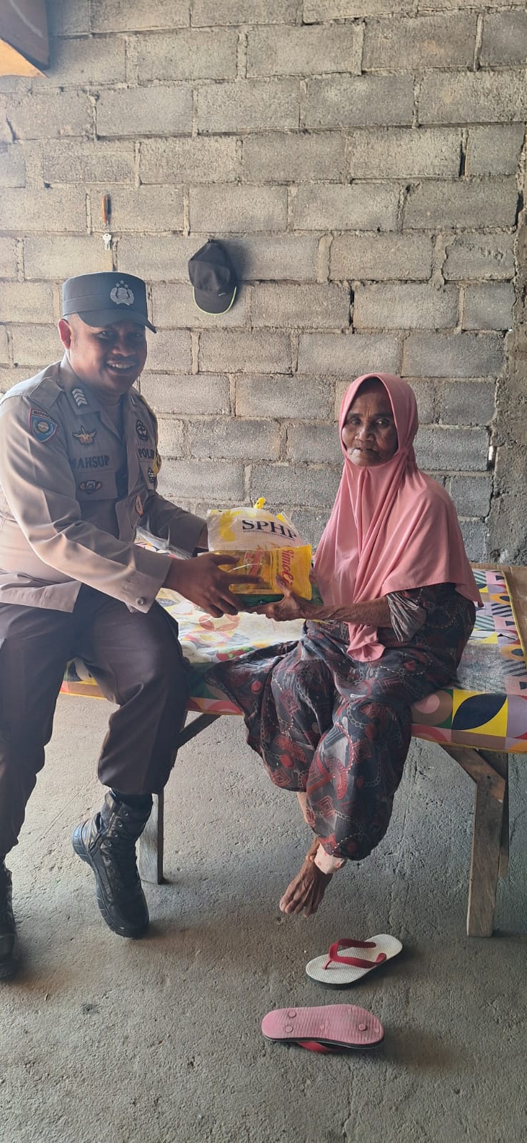 Dalam kegiatan tersebut, Bripka Mahsup menyerahkan bantuan berupa beras 5 kilogram dan minyak goreng kepada dua warga binaannya, yaitu Ibu Siti Aisah dan Ibu Siti Badriah. Bantuan ini merupakan bentuk kepedulian sosial serta upaya mempererat hubungan silaturahmi antara polisi dan masyarakat di wilayah binaan.
