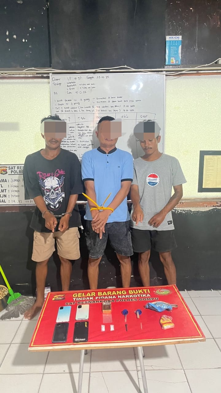 Dompu NTB–lintasrakyat-ntb.com-Tekad Polres Dompu dalam memerangi peredaran narkotika kembali terbukti. Pada Jumat (14/11/2025) sekitar pukul 01.00 Wita, Tim Opsnal Satresnarkoba berhasil mengamankan tiga terduga pelaku penyalahgunaan narkotika jenis sabu saat melakukan pengungkapan kasus di sebuah rumah di Dusun Beranti, Desa Nangamiro, Kecamatan Pekat, Kabupaten Dompu.