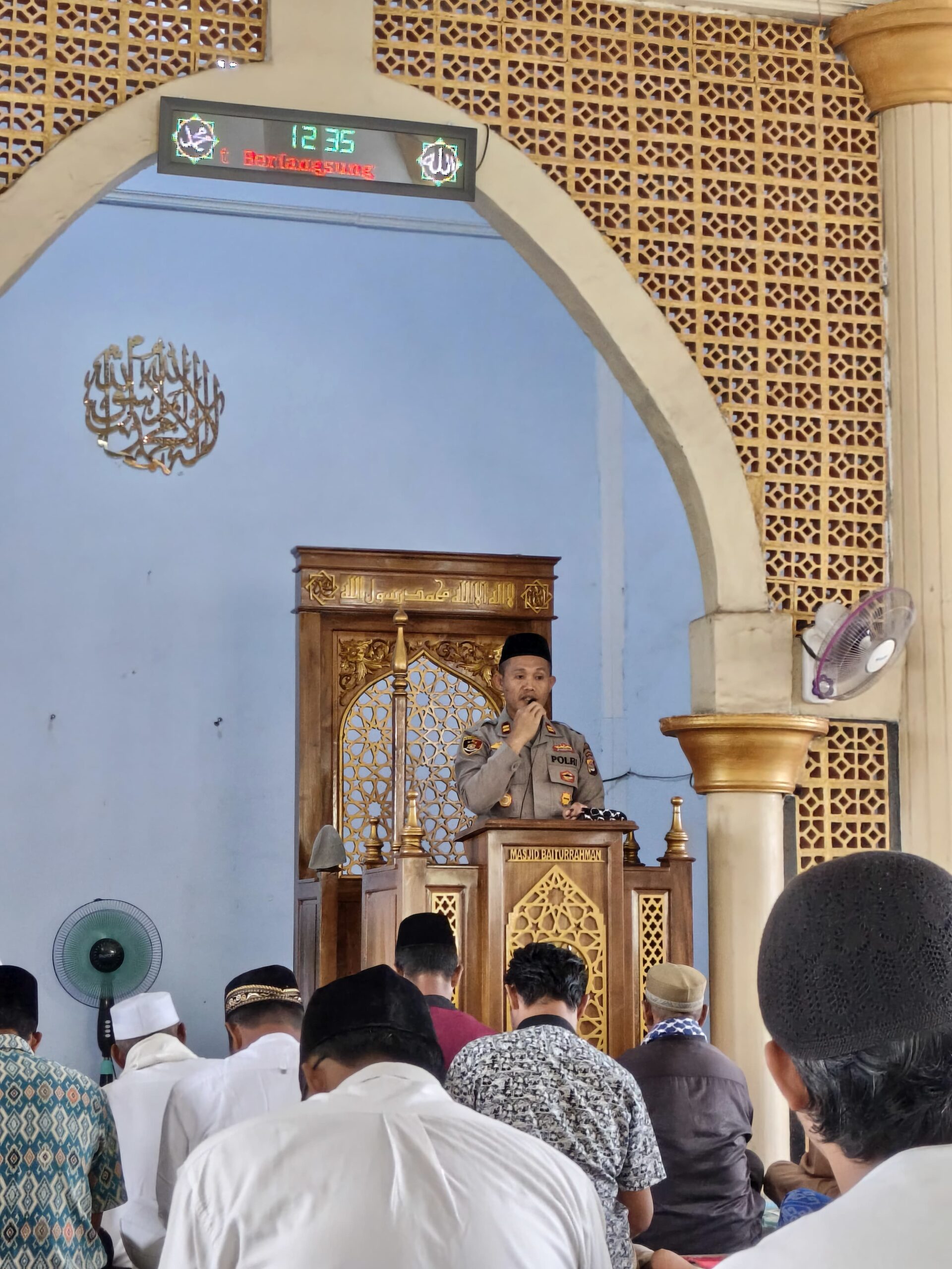Dalam khutbahnya Kapolsek Kempo menyampaikan pesan kepada jamaah.