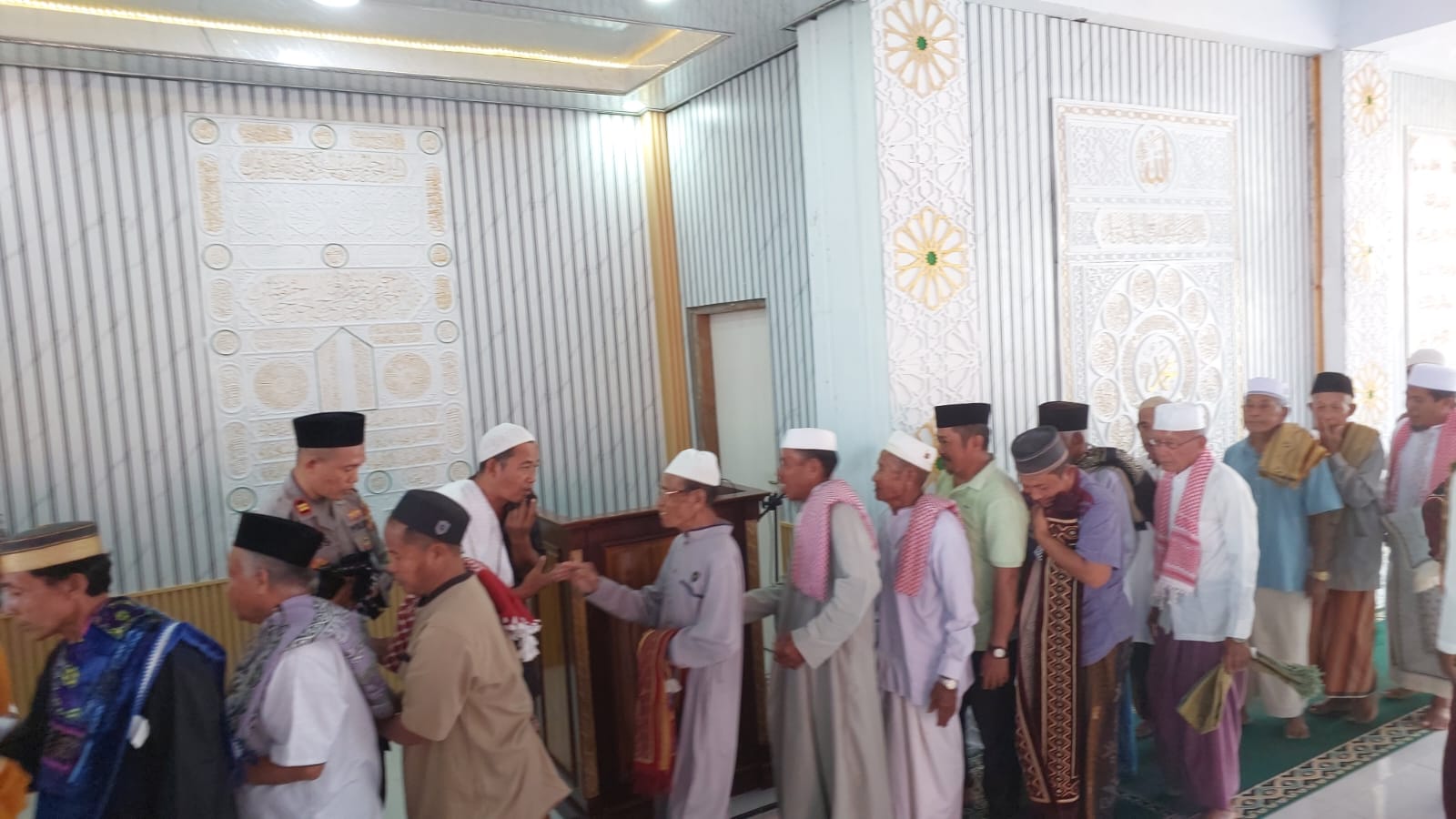 ” saya sebagai Khatib mengajak kepada kita semua terutama untuk diri saya pribadi. Agar slalu bertaqwa kepada Allah SWT dengan sebenar-benarnya Taqwa dengan senantiasa Menjalankan segala Perintah-Nya salah satu yakni melaksanakan sholat 5 waktu secara bersama-sama dan menjauhi larangan-Nya salah satunya yakni mengubah selain Allah SWAT, serta senantiasa bersolawat kepada Baginda Rasulullah Nabi Muhammad SAW agar kelak kita mendapatkan syafaatnya baik di dunia lebih-lebih di Akhirat Kelak ” ungkapnya.
