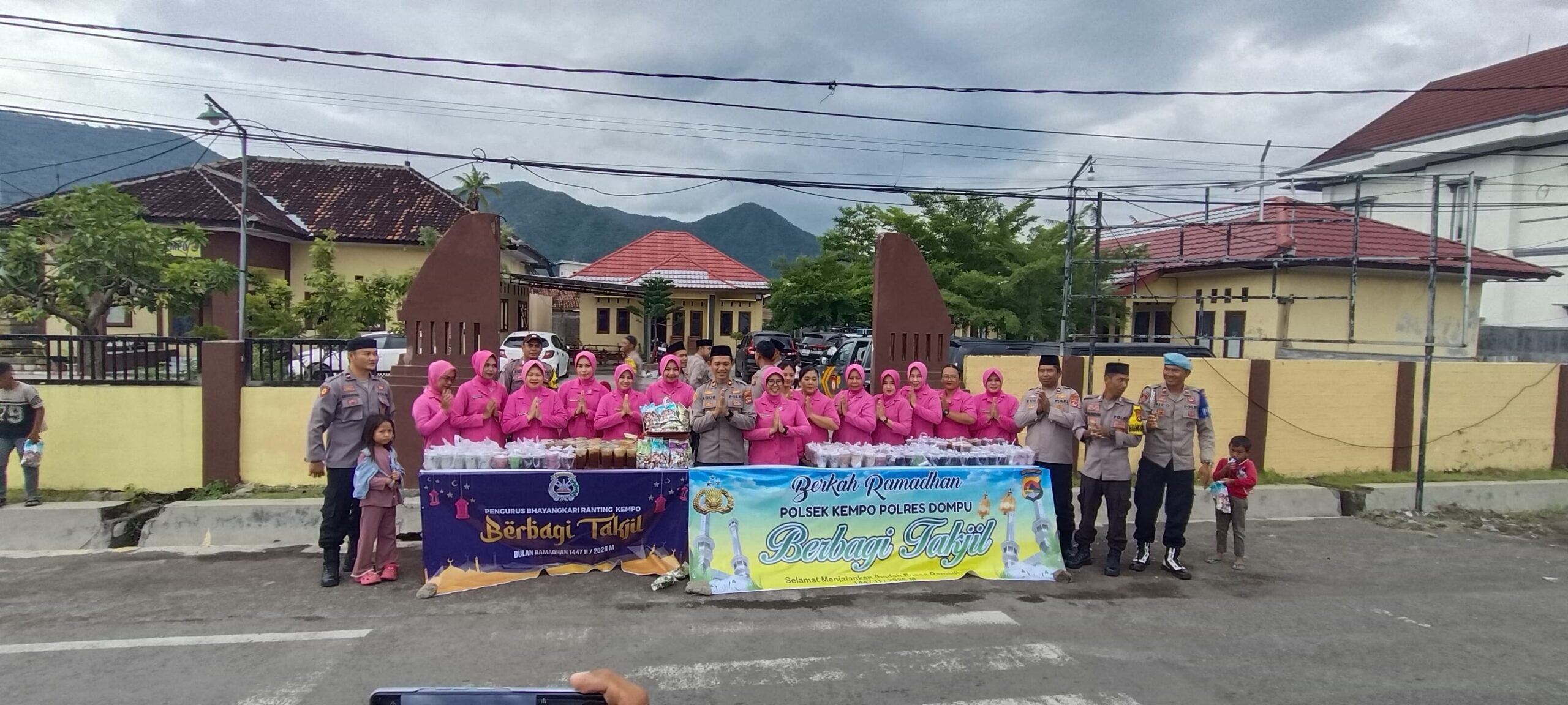 Dompu,NTB-lintasrakyat-ntb.com-7 Maret 2026 ,Dalam rangka menyemarakkan bulan suci Ramadhan serta mempererat hubungan antara Polri dan masyarakat, personel Polsek Kempo bersama Bhayangkari Ranting Kempo melaksanakan kegiatan sosial pembagian takjil kepada masyarakat dan pengguna jalan yang melintas di depan Mako Polsek Kempo, Sabtu (7/3/2026) sekitar pukul 16.30 Wita.